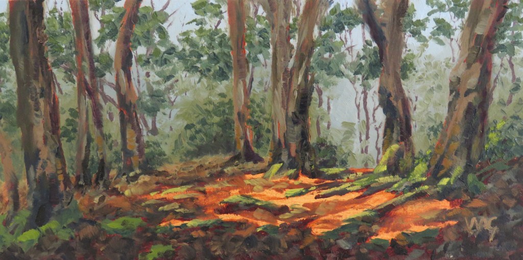 Most of my oil paintings are small, but they pack a punch. I aim to capture the atmosphere encountered at each location. Most of them are painted en plein air while experiencing the place and atmosphere first hand.