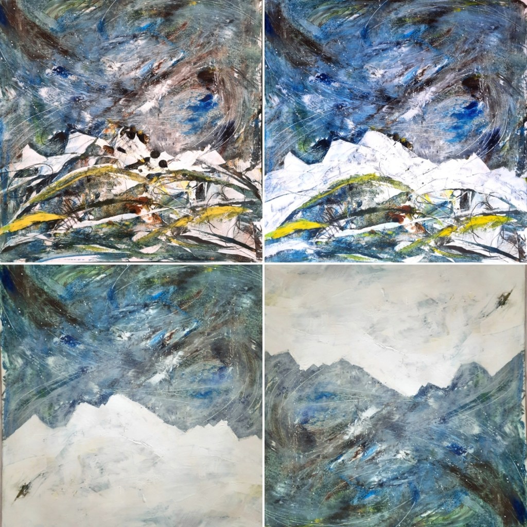 I was processing progress photos of the day’s work and some needed rotating. It turned out that one was better upside-down! In my eyes at least! In the group of four progress shots below you can see the difference. I guess we’re conditioned to see land as darker than sky most of the time anyway.
