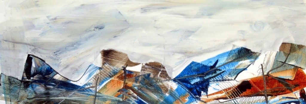 I like to think that my past experience and knowledge emerge automatically to help me as I create. (Learning to trust yourself and your judgement is the key I think.) It leaves room for a more relaxed, playful process. Treasures and chance effects can emerge into the openness of abstract creation but they would be locked away should I insist on depicting purely what I see.