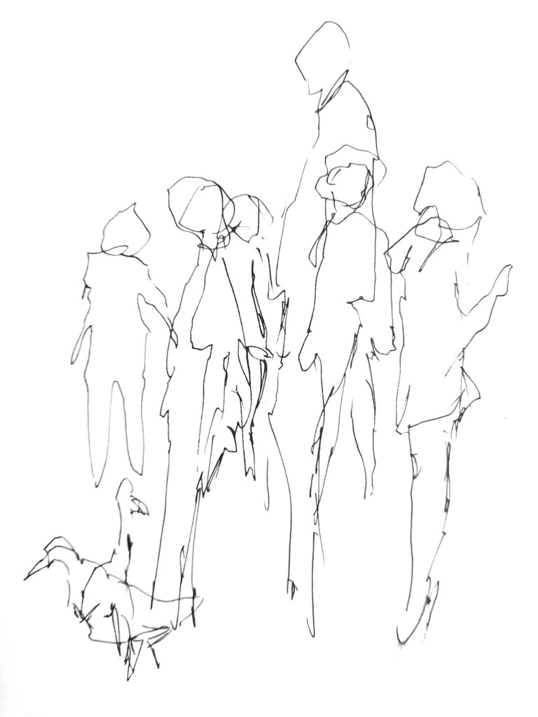 What if I draw as I’m walking along the beach? Literally …. because there’s little to trip over! And, what if I overlap the drawings? “Salty” the duck was doing her own “what if”. She was foraging for food in the wet sand at the waterline.