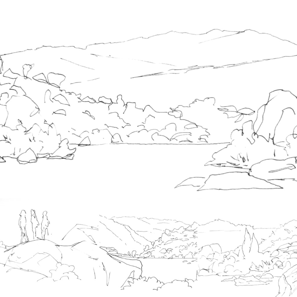 This photo and the compilation image of four sketches below it are from a recent wander at Mt Field National Park. Lots of inspiration and influence up there!