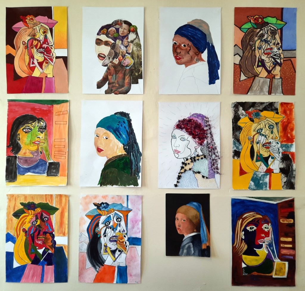 This year it was decided to have everyone work, in their groups, on specially chosen master works by artists like Picasso, Vermeer etc. We were all given an outline copy of the artwork to work on in whatever way we chose. You can see some of the results below. Our room sure looked brighter when they were all put up. For the privilege of this experience, we each made a donation, and supplied ourselves with morning tea.
