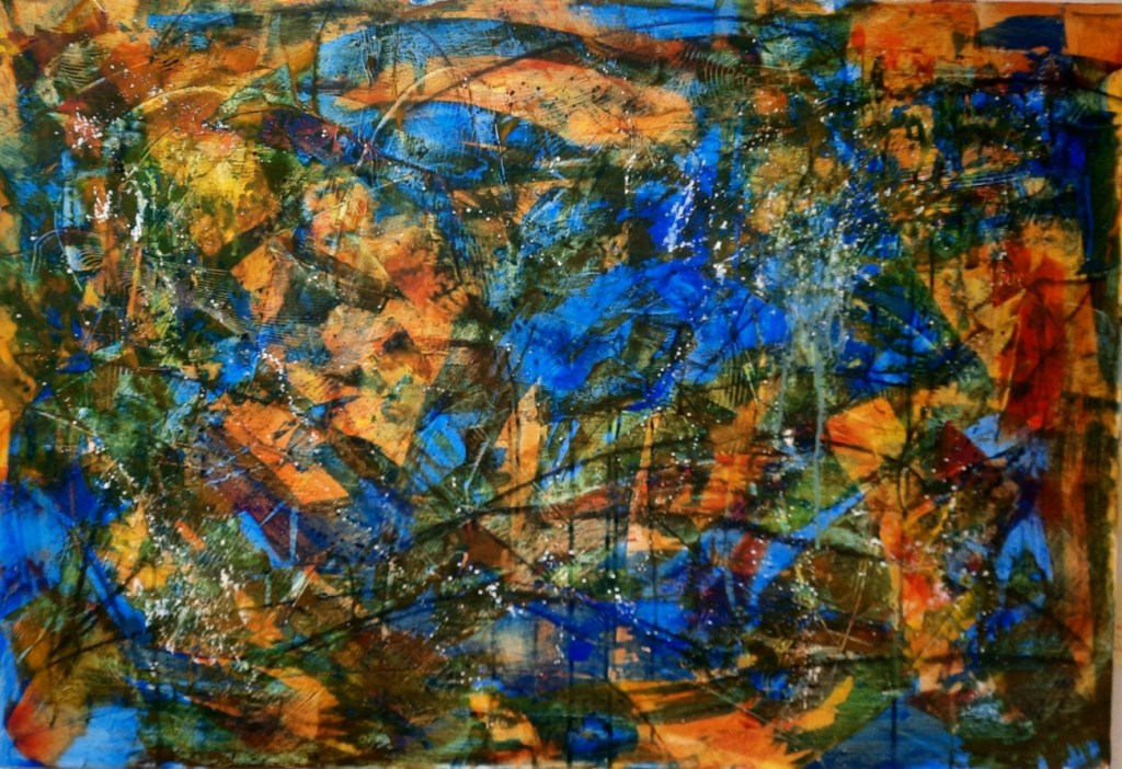 It’s not as simple as it sounds. Things can start out with a design in mind, but the painting may lead you in other directions. The starting design or idea gives you something to work to, a structure, an idea, rather than just slapping paint about and hoping for the best. Having said that, I’m continually open to serendipitous occurrences and new directions. Slapping paint around is often part of that.