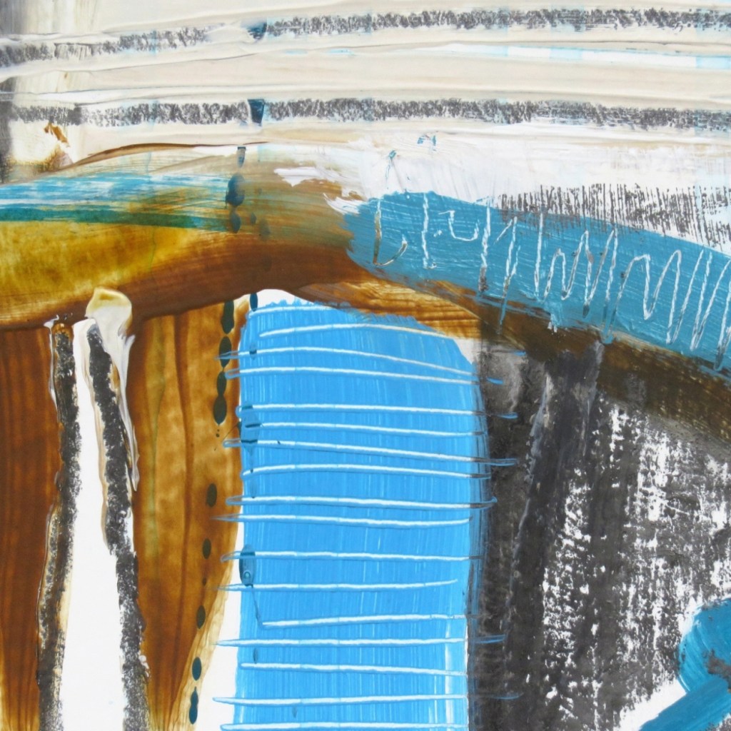 An interesting little talking piece. This little abstract owes it’s existence to that “s” curved line. It had such gesture that I couldn’t resist taking it further after the initial random marks. The line takes you on a journey through this painting to all the interesting marks, twisting and turning as it goes.