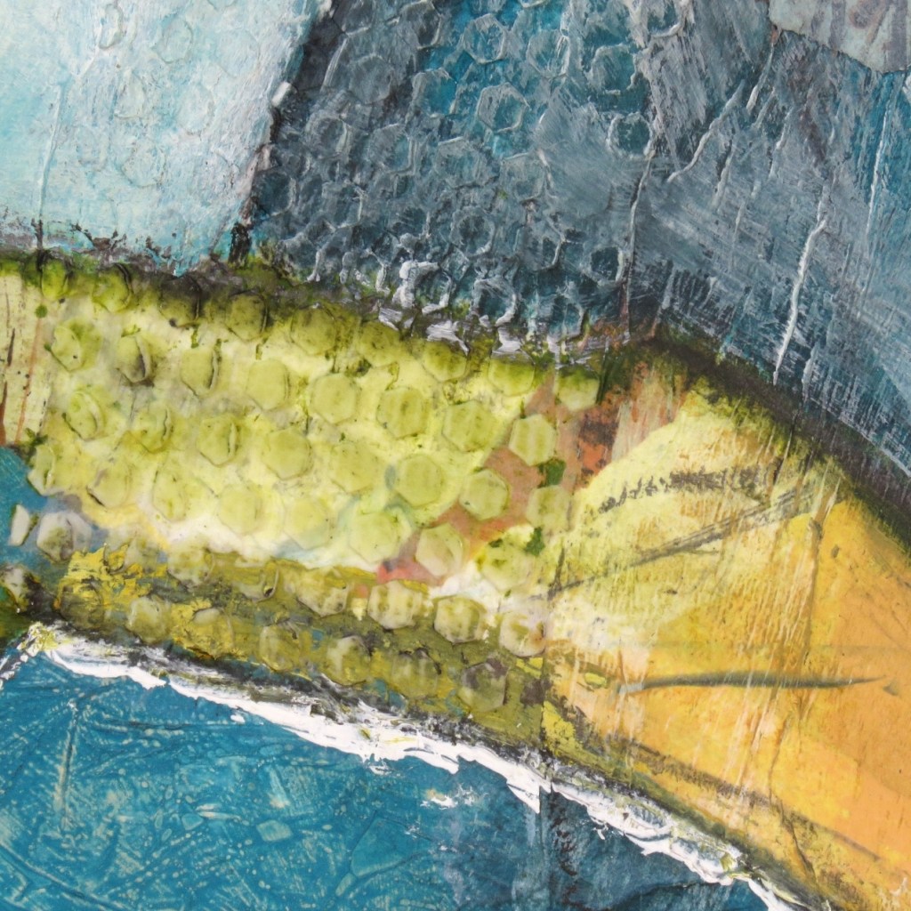 While working on this one, I could feel a definite landscape emerging. Later in the process the title “Intensive Andes” came to me. The colours and marks easily suggest the Andes to me. It’s nice when a painting takes on a life of its own. It carries you along with it. There’s a farming village nestled among these cultivated hills somewhere.