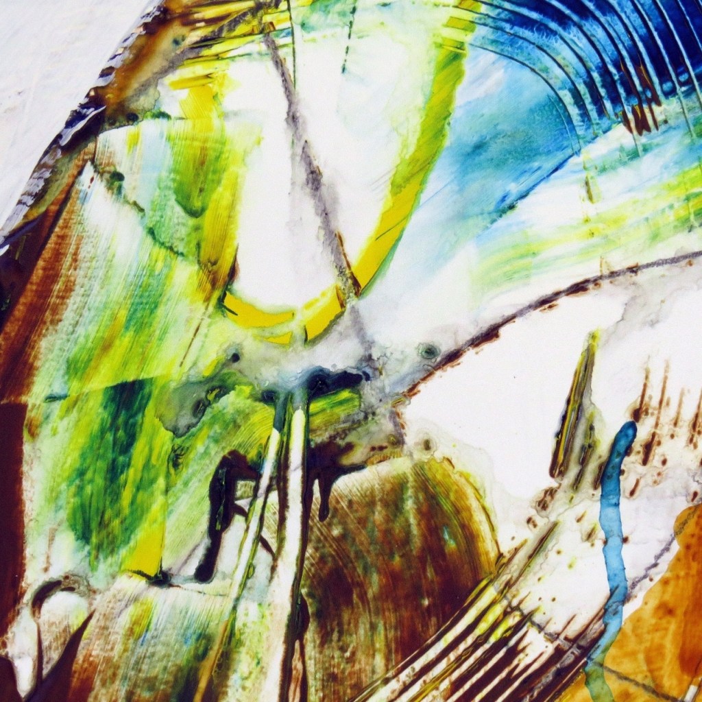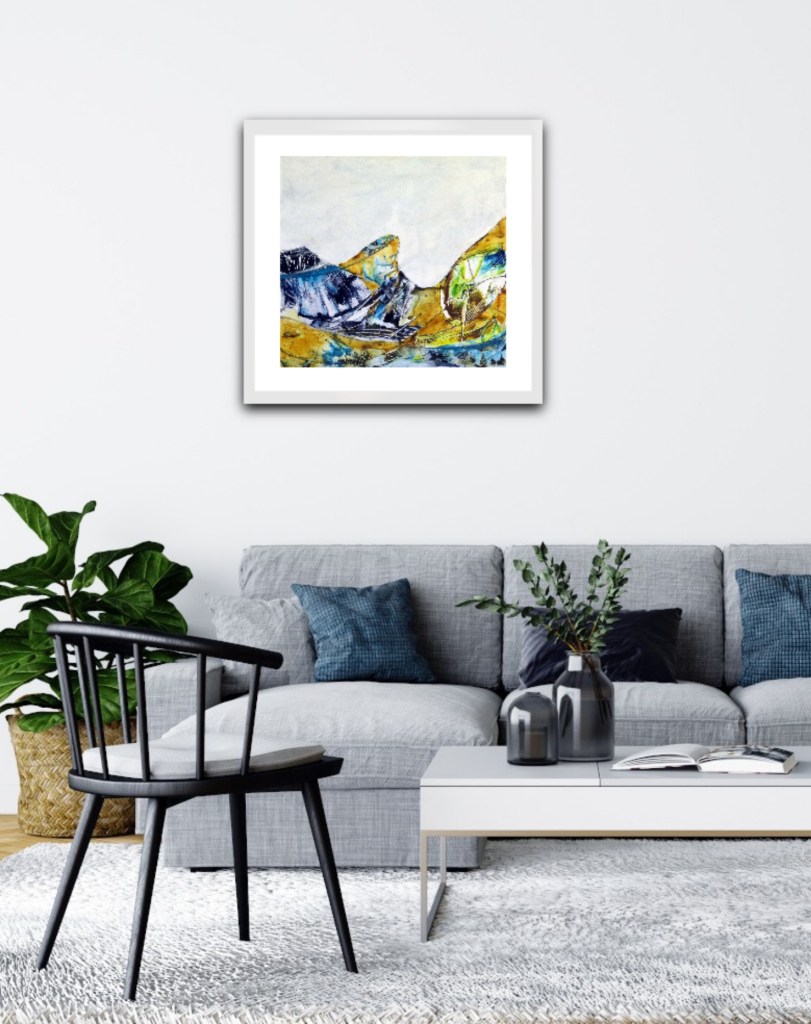 It felt like my tools were romping around this imaginary landscape. It’s a joy to view and feel the gestures and marks in this painting. There’s movement and excitement, a love of painting, making marks and “finding” this fun landscape within it all. “Romp” is an exciting and lively piece that will get your visitors thinking and imagining.
