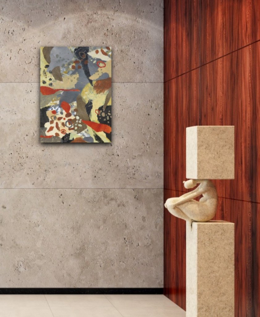Just as edible salted caramel has tantalizing hits of flavour to excite your tastebuds, this painting has lively details to excite your eyes. The neutral palette of earthy colours plays gently against stronger shapes of dark grey and an orange earth colour, creating visual excitement. Just like the surprise when you bite into the sweet saltiness of salted caramel. “Salted Caramel” is ready to hang, but you may choose to add a frame using Bluethumb’s professional framing service.