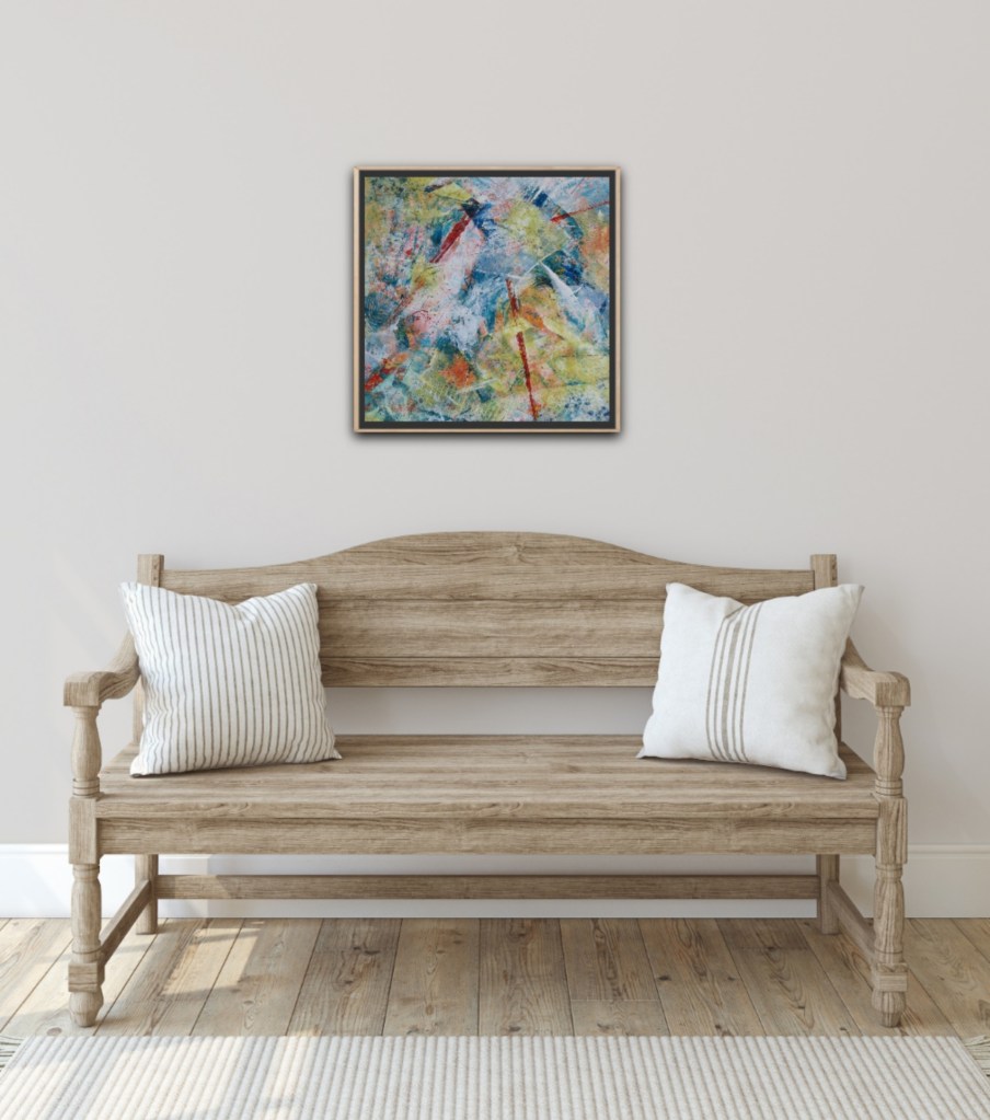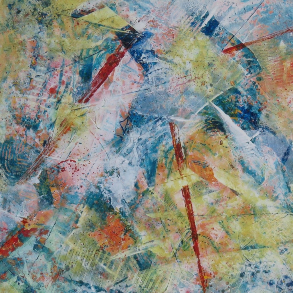 Take a journey along the lines in “Something Along These Lines”. In this lively painting there is plenty to see. Layers of marks and textures create an exciting surface that will keep you looking and finding new things.